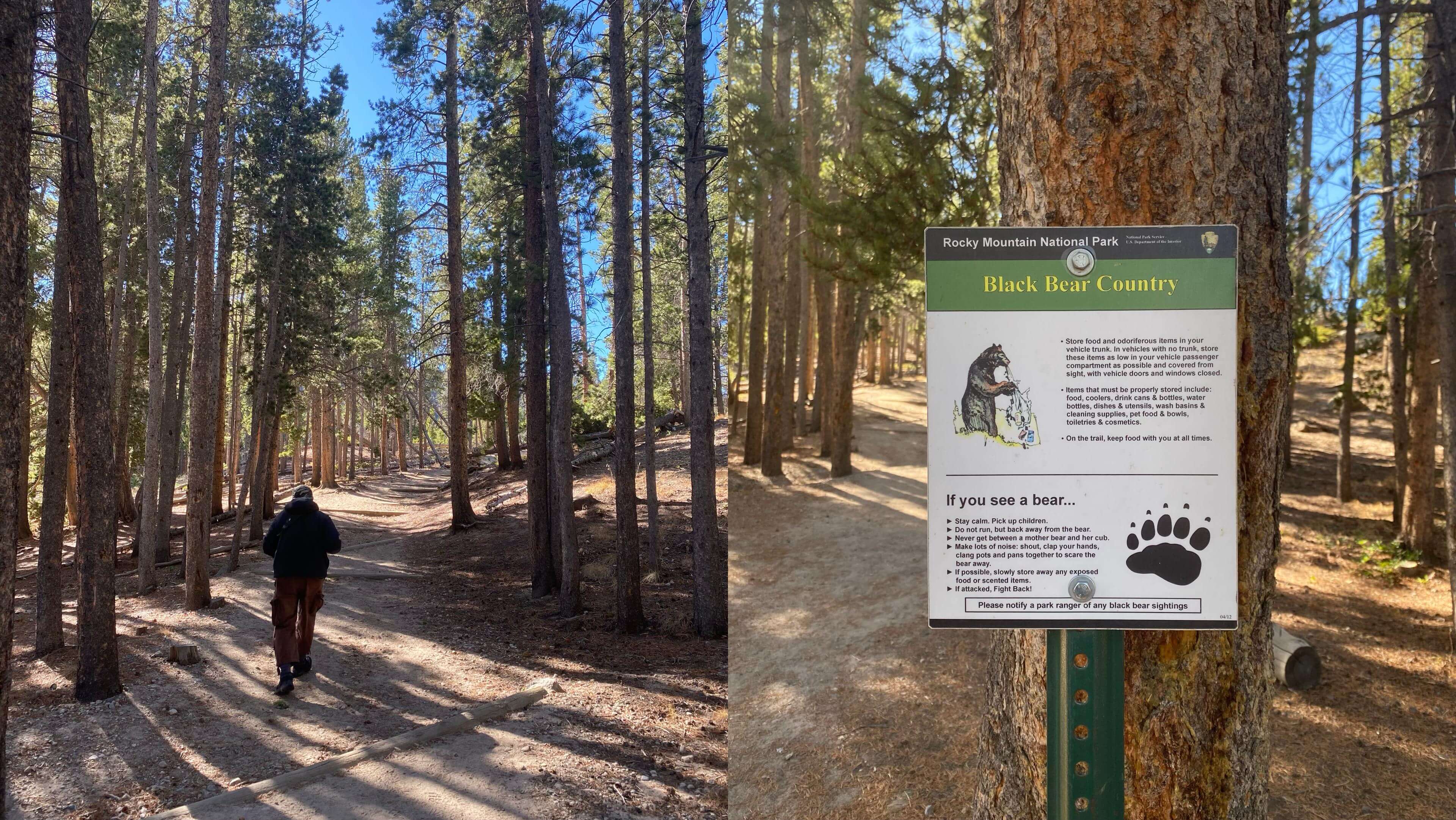Dikenal sebagai base camp-nya Taman Nasional Pegunungan Rocky, rumah buat satwa liar seperti beruang hitam. Niatnya mau trekking santai dengan persiapan standar minimum, termasuk tidak membawa trekking pole. Namun.. masuklah kita ke hutan lewat jalan setapak yang ternyata, “Wow, sebuah ide buruk”. Medannya makin lama makin curam, lutut langsung berontak minta balik.