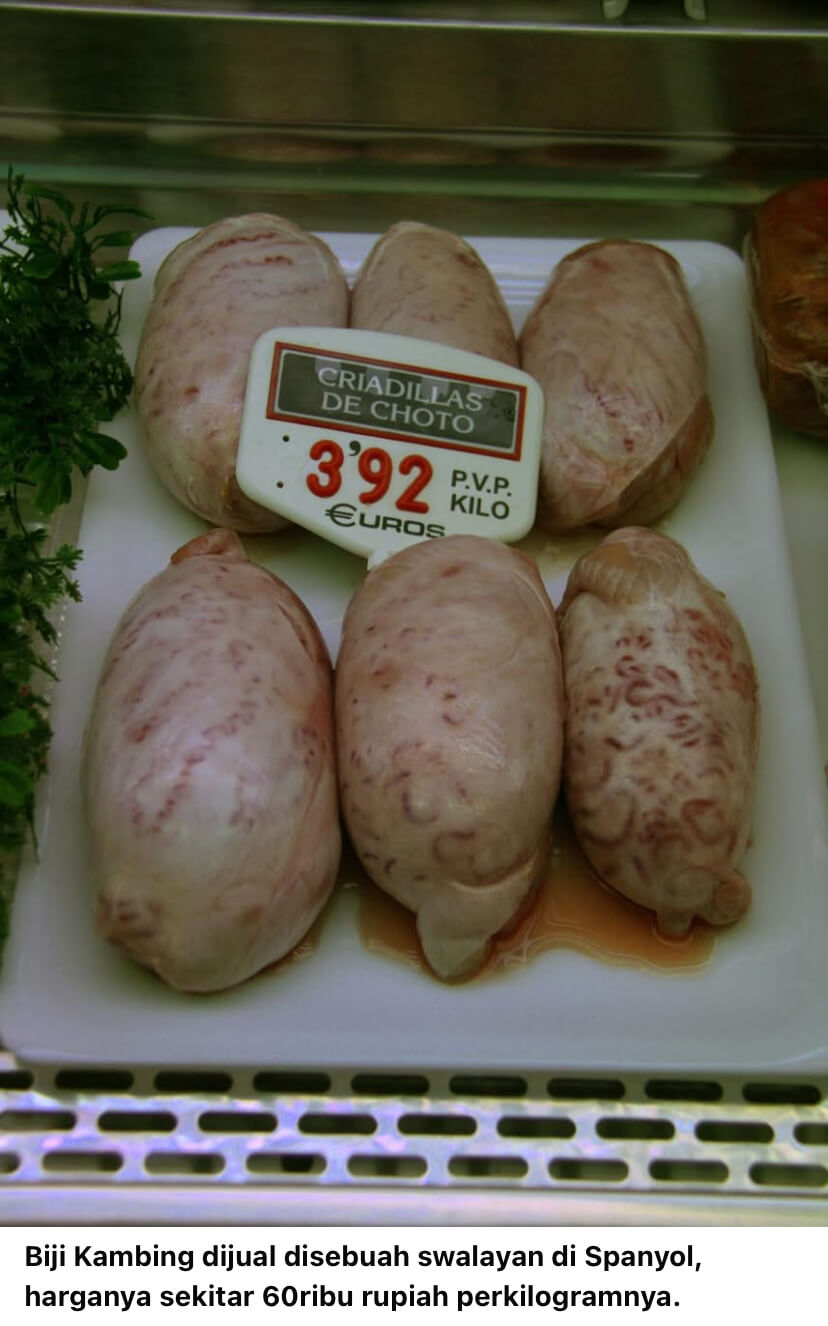 Sedangkan di Eropa sendiri, Biji Kambing dijual dengan harga yang lumayan mahal, yaitu seharga 3.92 Euro Perkilogram nya, itu sekitar 60ribu rupiah, dan di Spanyol dan beberapa negara di Eropa, mempunyai resep masakan Biji Kambing nya masing-masing.