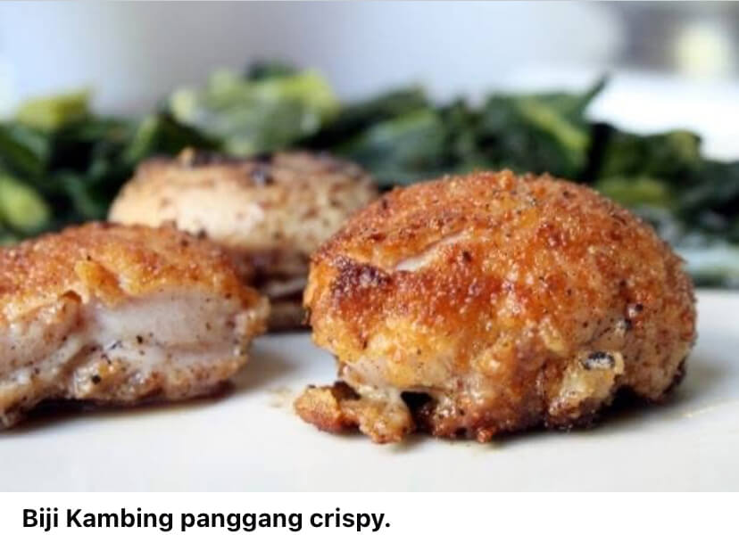 Biji Kambing sangatlah Istimewa, bagian ini adalah dimana hormon testosteron dalam seekor Kambing diproduksi, dan bagian Biji Kambing ini bertekstur lunak dan kenyal, disertai warna putih didalamnya dan terkadang terlihat urat-urat disekitaran bundaran Biji Kambingnya.